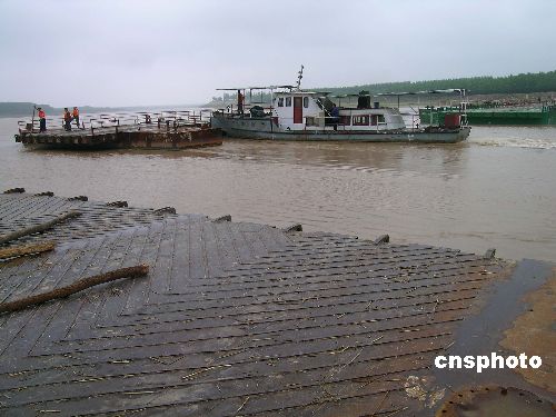 6月21日,山东济南黄金黄河浮桥管理处工作人员正拆除浮桥。经国家防总批准,2007年黄河调水调沙于6月19日9时开始,这是2002年以来黄河第六次进行调水调沙。这次调水调沙洪水水头将于22日进入济南,在“人造洪峰”到来之前,济南黄河境内19座浮桥将全部拆除。 中新社发 张庆民 摄