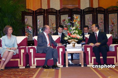 6月29日,中共四川省委书记杜青林在成都会见了来四川访问的西班牙国王胡安·卡洛斯一世和王后索菲娅。中新社发 杨杰 摄