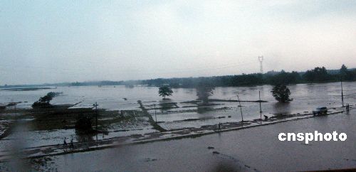 湖北随州、孝感、荆门、襄樊、黄冈等地连日来先后出现大到暴雨,局部出现大暴雨或特大暴雨,造成局部灾害损失严重。截止7月3日17时,湖北省6月27日以来的暴雨洪涝灾害已造成45个县(市、区)350.6万人受灾,因灾死亡30人、失踪9人,紧急转移安置灾民9.2万人;农作物受灾面积181.71千公顷,其中绝收37.4千公顷;倒塌房屋9492间,损坏房屋4.9万间;因灾直接经济损失8.99亿元,其中农业经济损失6.73亿元。图为湖北孝感市一乡村公路被水淹没,车辆无法前行。中新社发 艾启平 摄