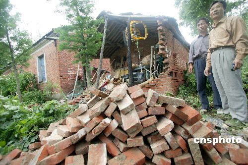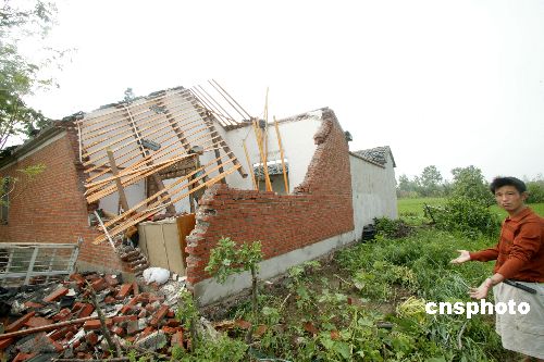 7月3日下午,安徽天长市遭受该市有气象记录以来最大的龙卷风袭击,秦栏镇、仁和集镇受灾最为严重。大片房屋倒塌,造成目前已知有七名群众在此次事故中死亡,另有71人重伤住院、轻伤者27人。中新社发 吴俊 摄