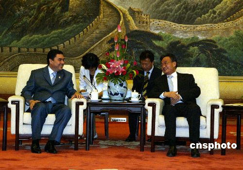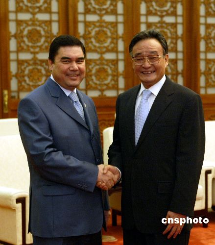七月十八日,吴邦国委员长在北京人民大会堂会见土库曼斯坦总统别尔德穆哈梅多夫一行。中新社发 任海霞 摄