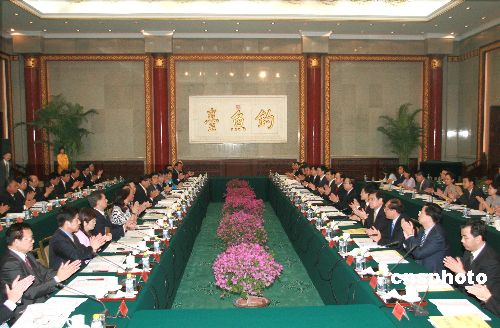 七月二十五日,第三次保护台商合法权益工作会谈在北京钓鱼台国宾馆举行。中新社发 廖文静 摄