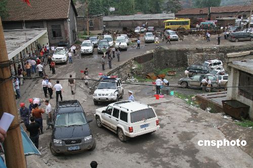 七月二十九日早晨八时四十分左右,河南省三门峡市陕县支建煤矿东风井发生透水事故,矿方立即组织井下人员撤离,当时下井人数为一百零二人,三十三人及时升井,造成六十九人被困。三门峡陕县支建煤矿因山洪爆发而引起的“七.二九”透水事故,国务院总理温家宝、国务委员华建敏分别作出重要批示,要求全力施救、科学施救,严防事件再次发生,确保被困矿工生命安全。目前,地面与井下被困人员的电话联系畅通,六十九名被困人员处于安全区域,情绪较为稳定。救灾物资也已陆续送往矿区,急救、公安、移动通讯、电力抢修设备等都在矿区警戒待命。中新社发 张力华 摄