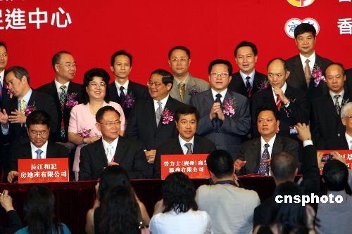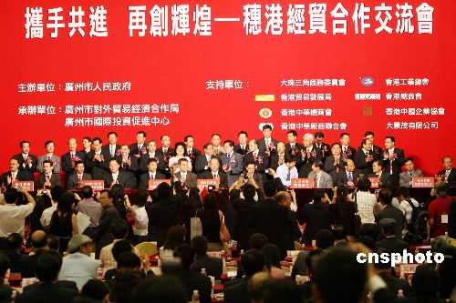 八月三日上午,“携手共进,再创辉煌——穗港经贸合作交流会”在香港隆重举行。交流会共达成包括广州IT国际纺织城科贸园、松日集团总部、创维广州生产基地、穗港软件合作等投资合作项目21个,投资总额超过16亿美元。中新社发 武仲林 摄