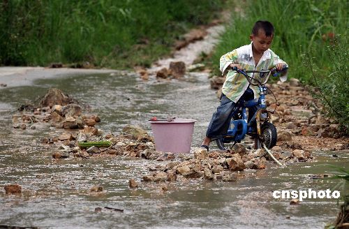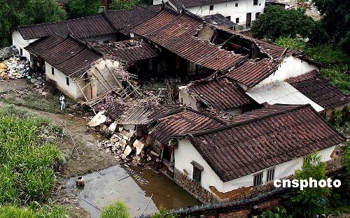 八月十四日下午,遭受特大暴雨袭击的福建安溪县金谷镇美洋村。从十三日十七时起,安溪蓝田、长坑等地出现百年一遇的特大暴雨,受灾乡镇共十四个,倒塌房屋五百二十五间,造成三死二伤,直接经济损失达六千二百万元人民币。当地干部、民众雨后立即行动起来,开展抢险救灾。中新社发 闽泉 摄