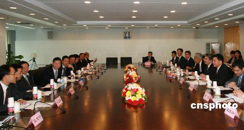 八月十六日,中国证券监督管理委员会主席尚福林,在北京会见新任香港特别行政区财政司司长曾俊华。中新社发 廖文静 摄