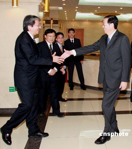 八月十六日,中国人民银行行长周小川在北京会见新任香港特别行政区财政司司长曾俊华。中新社发 廖文静 摄
