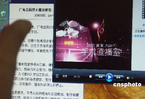 2007年8月24日获悉,继本月15日叫停重庆电视台选秀节目《第一次心动》后,国家广电总局近日再度拍响惊堂木,叫停广东电视台女性整容真人秀节目《美莱美丽新约》,并明令禁止整容、变性节目。另外,侵犯个人隐私的节目和活动也被明令禁止制作、播出。据悉,《美莱美丽新约》是广东电视公共频道的一档大型女性整形美容真人秀活动,活动内容包括大量的整形手术,参加活动选手整容的过程将通过现场直播呈现给观众,整个手术过程会真实的展现在观众面前。中新社发 仲兆华 摄