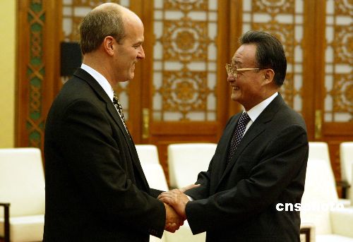 八月二十八日,吴邦国委员长在北京人民大会堂会见由里克·拉森众议员率领的美国国会“美中工作小组”众议员代表团一行。中新社发 任海霞 摄