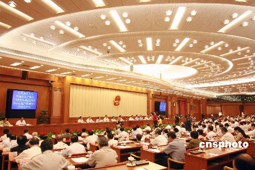 八月三十日,十届全国人大常委会二十九次会议在北京人民大会堂闭幕。会议表决通过了反垄断法、突发事件应对法、就业促进法、修订后的动物防疫法和关于修改城市房地产管理法的决定。中新社发 廖文静 摄