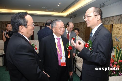9月8日,国务院侨办副主任赵阳(前排右)在厦门主持召开“海外华商中国投资推介会”,并在会前会见林文镜、黄双安(前排左)、陈金烈、陈大江(前排中)、唐裕、李昭进、陈清泉、林定强等著名华商。中新社发 郑祚声 摄