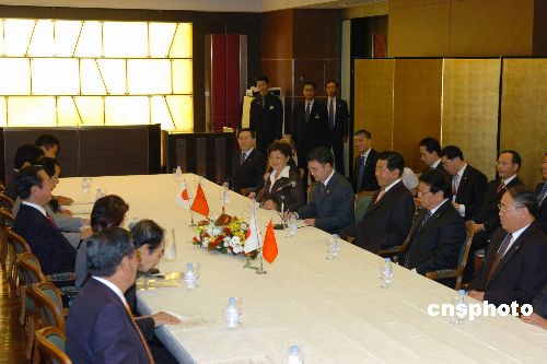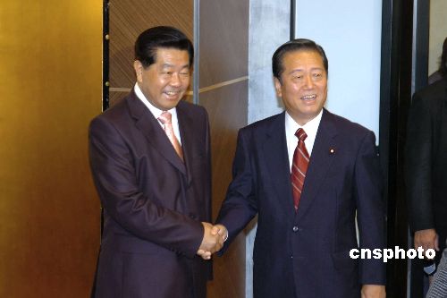 9月13日,正在日本进行正式友好访问的中国全国政协主席贾庆林在东京会见了日本民主党党首小泽一郎。中新社发 滕剑峰 摄