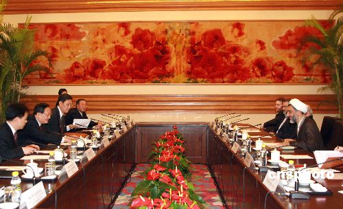 九月十四日,国务委员唐家璇在北京会见伊朗政府特使普尔穆罕默迪。中新社发 廖文静 摄