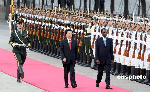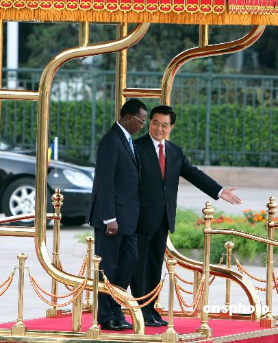 九月二十日,中国国家主席胡锦涛在北京人民大会堂举行仪式欢迎乍得总统伊德里斯.代比.伊特诺访华。中新社发 任海霞 摄