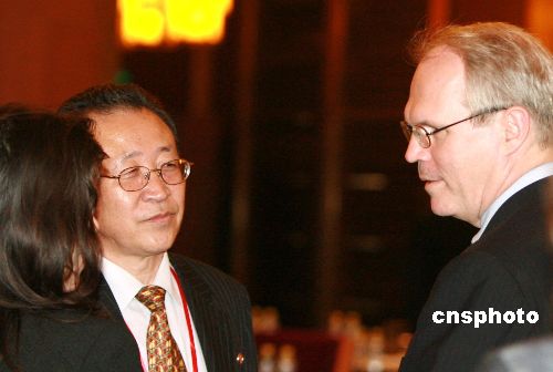 九月二十七日,朝核问题第六轮六方会谈第二阶段会议在北京钓鱼台国宾馆开幕。图为美方代表团团长希尔与朝鲜代表团团长金桂冠在会前交谈。中新社发 廖文静 摄