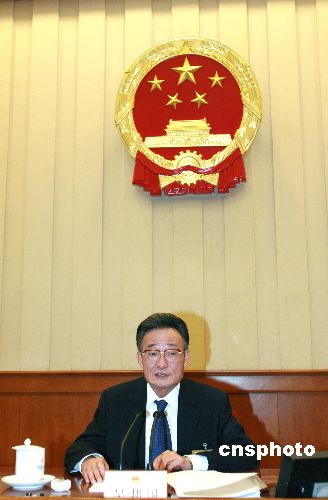 十月二十八日,十届全国人大常委会第三十次会议在北京人民大会堂闭幕。全国人大常委会委员长吴邦国主持会议并讲话。中新社发 廖文静 摄