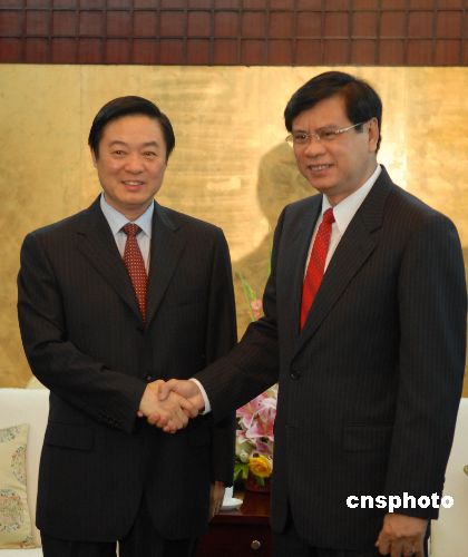 十月二十九日,出席中国—东盟博览会的老挝总理波松在南宁会见了中共广西壮族自治区委员会书记刘奇葆。两人就双边的教育合作及产业合作达成了许多共识。中新社发 蒋雪林 摄
