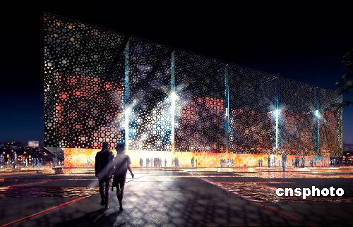 十一月十六日,阿拉伯联合酋长国在上海与中国方面正式签署参展2010年上海世博会合同,并公布阿联酋国家馆设计方案。阿联酋是首个与中方签约参展上海世博会的中东国家。图为阿联酋国家馆的璀璨夜景效果图。中新社发 世博局 摄