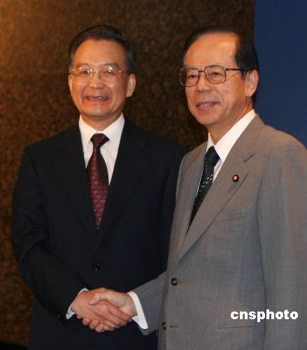 中国国务院总理温家宝十一月二十日在新加坡会见日本首相福田康夫,这是两位领导人的首次会晤。中新社发 周群 摄