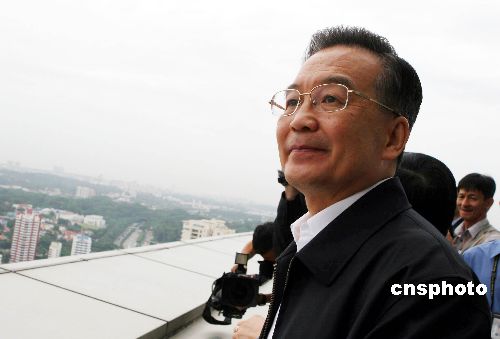 十一月二十一日上午,正在新加坡访问并出席东亚领导人系列会议的中国国务院总理温家宝,登上新加坡建屋发展局大厦三十二层,远眺新加坡普惠性廉价房区,考察新加坡提供公共住屋的经验和政策。中新社发 周群 摄