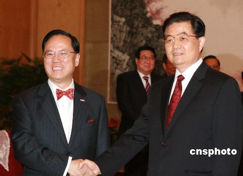 十一月二十三日,国家主席胡锦涛在北京会见来京述职的香港特别行政区行政长官曾荫权。中新社发 廖文静 摄
