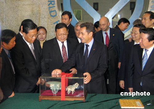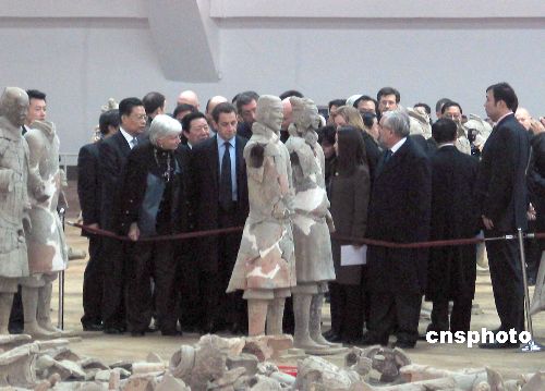 北京时间二十五日上午,法兰西共和国总统尼古拉·萨科齐抵达西安,开始了他此次的访华之旅。中新社发 冽玮 摄