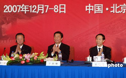 十二月七日,中国共产党与日本民主党定期交流机制第二次会议在北京举行。中共中央政治局委员、中央书记处书记、中央组织部部长李源潮(中),中共中央对外联络部部长王家瑞(右),日本民主党党首小泽一郎(左)出席会议并讲话。中新社发 廖文静 摄