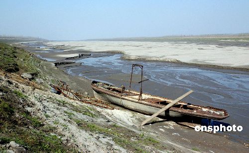 11月7日,一条船搁浅在黄石市牯牛洲的长江沙滩上。由于今年雨水少,长江黄石段水位下降严重,西塞山以下江面凸现大面积沙滩,长江航运及居民用水影响严重。据市水文水资源勘测局技术人员介绍,目前长江黄石段水位是11.51米,比去年同期低1.6米,是近二十年来的最低点。交通部长江航务管理局6日宣布长江中游因枯水形势严峻进入二级橙色预警状态,长江黄石段许多水面露出了浅滩。中新社发 邱孝威 摄