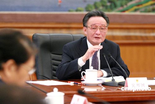 十二月十七日,十届全国人大常委会第七十次委员长会议在北京人民大会堂召开。全国人大常委会委员长吴邦国主持会议。中新社发 廖文静 摄