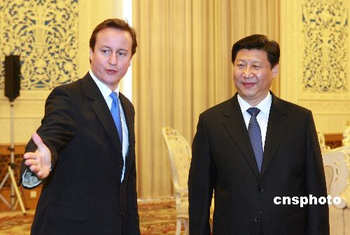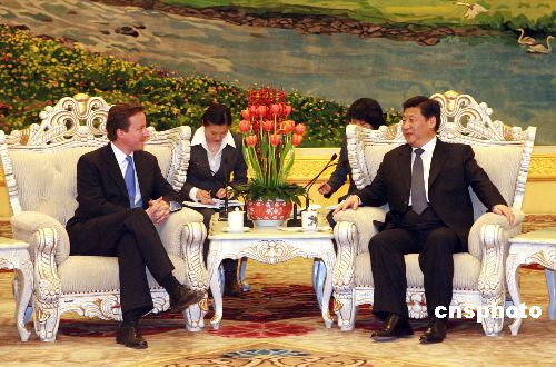 十二月十九日,中共中央政治局常委、书记处书记习近平在北京人民大会堂会见了由英国保守党领袖戴维·卡梅伦率领的英国保守党代表团。中新社发 廖文静 摄