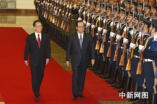 图:温家宝举行仪式欢迎日本首相福田康夫访华