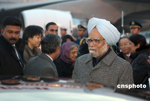 一月十三日,印度总理辛格乘专机抵达北京首都国际机场,开始访华之旅。中新社发 盛佳鹏 摄