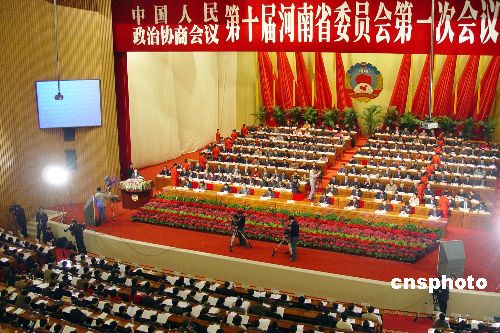 一月十四日上午,河南省政协十届一次会议在郑州开幕。本次会议共历时八天半,有二十八个界别的八百六十五名委员出席本次会议。中新社发 李志全 摄