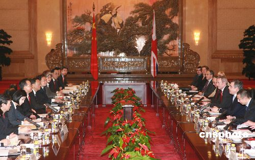 温家宝与布朗会谈 达成9项共识签近8亿美元合同