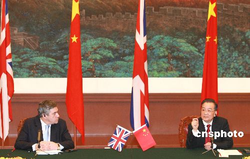 温家宝与布朗会谈 达成9项共识签近8亿美元合同