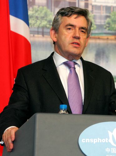 1月19日,正在华访问的英国首相戈登·布朗在上海出席中外记者见面会时表示,英中之间合作的不断加深有利于两国的经济发展。中新社发 汤彦俊 摄