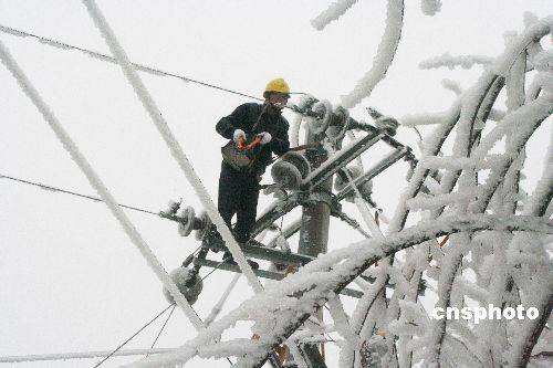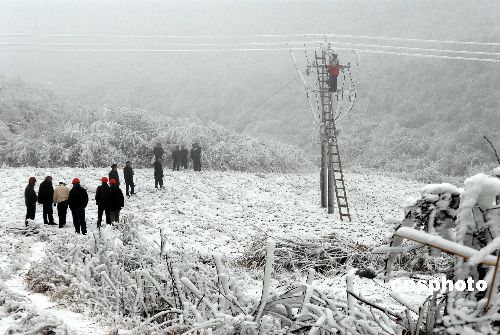 1月20至21日,黔东南州各县电力职工在抢修受冰冻灾害的电力设施。连日来,由于持续出现大范围雪凝天气,贵州省黔东南州境内的凯里电网(辖管黔东南州各县市)遭遇自1984年以来最为严重的冰冻灾害,凯里电网部门及下属的15家县局已紧急采取措施,确保电网稳定运行。1月14日以来,贵州黔东南地区温度均在零下1摄氏度,是24年以来最为严重的一次,出现严重的覆冰。覆冰导致一些输电设施杆塔和导地线不堪重负而倒塔断线,电网设施受损严重。截止1月21日,凯里电网出现孤网运行,各县农网线路等输配电线路都不同程度出现倒杆断线的情况,造成黔东南州南部电网七个县全部停电。冰灾发生后,凯里电网部门迅速启动“抗冰保电”应急预案,同时在当地媒体发布停电预警公告,并积极做好医院、交通、通讯、矿山等重要客户的安全用电工作。中新社发 吴如雄 摄