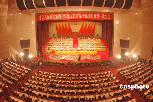 1月22日上午9时,中国人民政治协商会议黑龙江省第十届委员会第一次全体会议在哈尔滨国际会议中心环球剧场开幕。中新社发 王忠言 摄