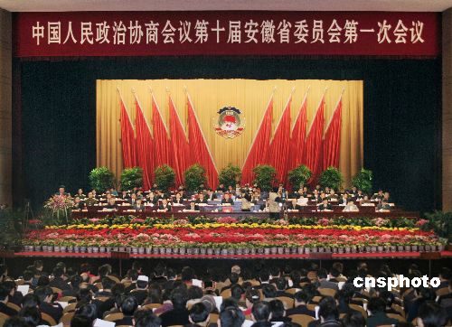 1月23日上午9时,政协安徽省十届一次会议在安徽省大剧院拉开帷幕。来自全省各党派团体、各界别的政协委员欢聚一堂。当天上午,会议听取中国人民政治协商会议第九届安徽省委员会常务委员会工作报告和中国人民政治协商会议第九届安徽省委员会常务委员会提案工作情况的报告。中新社发 张娅子 摄