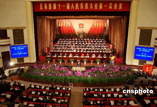 1月25日,江苏省第十一届人民代表大会第一次会议在南京开幕。这次大会主要有两大任务:一是讨论和审议人大、政府和“两院”的工作报告,以及相关的各项工作报告,回顾总结过去五年来的工作情况和基本经验,讨论确定今后五年和2008年江苏省经济社会发展的大政方针和主要任务。二是选举产生江苏省出席第十一届全国人民代表大会的代表,选举产生新一届省人大常委会组成人员,省人民政府省长、副省长,省高级人民法院院长,省人民检察院检察长;决定省人民代表大会专门委员会组成人员。中新社发 王学峰 摄