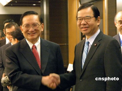 2月21日上午,正在日本访问的中国国务委员唐家璇在东京会见了日本共产党委员长志位和夫。中新社发 朱沿华 摄