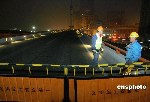 2月23日零时,随着最后一辆车的通过,素有“亚洲第一弯”之称的上海延安路高架外滩匝道正式封闭,拆除工作也随之开始,此举标志着外滩地区交通综合改造工程全面展开。中新社发 汤彦俊 摄