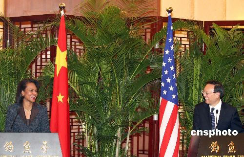 图:杨洁篪与美国国务卿赖斯举行会谈