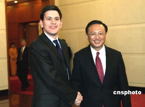 图:杨洁篪与英国外交大臣米利班德举行会谈