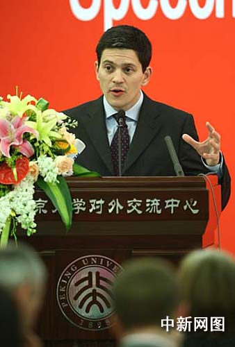 2月29日上午,正在访华的英国外交大臣米利班德在北京大学国际关系学院发表演讲。盛佳鹏 摄