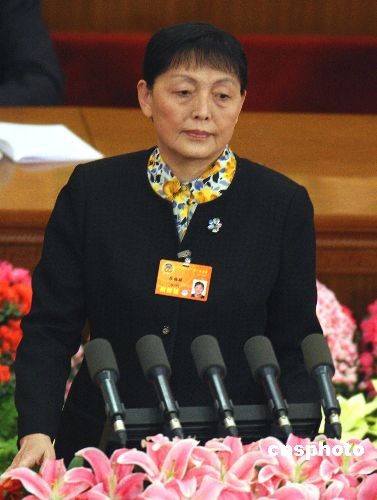 3月3日15时,全国政协十一届一次会议在北京人民大会堂开幕,会议听取贾庆林关于政协全国委员会常务委员会工作报告后,张梅颖作政协全国委员会常务委员会关于提案工作情况的报告。中新社发 任晨鸣 摄