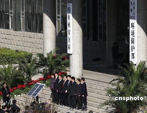 2008年3月27日上午9时,中华人民共和国环境保护部举行了揭牌仪式。中新社发 鲁谷 摄