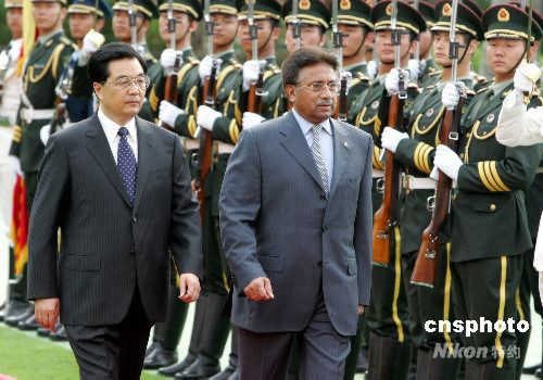胡锦涛在三亚欢迎巴基斯坦总统穆沙拉夫
