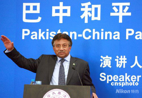 4月14日,巴基斯坦总统佩尔韦兹·穆沙拉夫在北京清华大学发表演讲,并回答学生提问。中新社发 廖文静 摄
