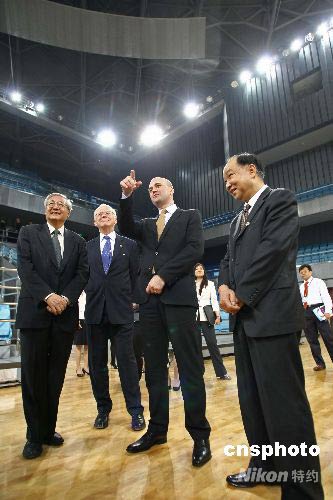 4月14日,瑞典首相赖因费尔特在北京大学发表演讲,并参观了北京大学体育馆。北京大学体育馆将作为2008年北京奥运会乒乓球专用场馆。中新社发 盛佳鹏 摄